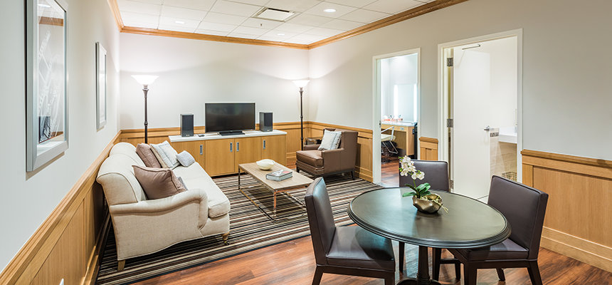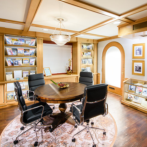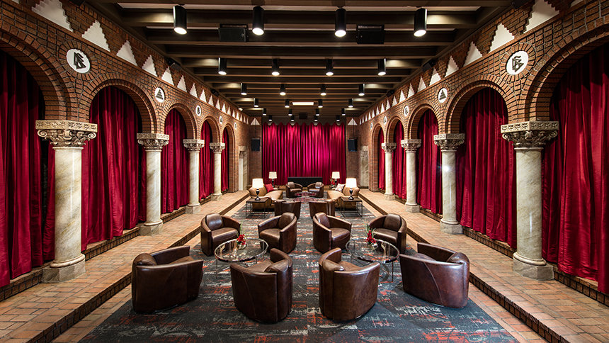 es quizás la “joya” del lote, con sus columnas Toscanas, molduras hechas a mano y mobiliario Art Deco. Construido originalmente como la sala de proyección de los estudios, ahora sirve como la sala de descanso para aquellos que participan en programas producidos aquí, desde de entrevistas hasta telemaratones.