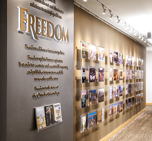 busca soluciones a los problemas de la sociedad y eleva las aspiraciones humanas.Ahora Freedom se extiende más allá de los medios impresos a la radio, la televisión e internet.