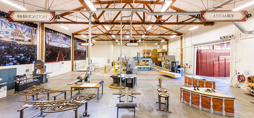 Alojado en lo que era el primer escenario de filmación de los estudios, el taller de Escenografía está equipado con la última maquinaria de alta tecnología para construir decorados y escenarios en 3D.