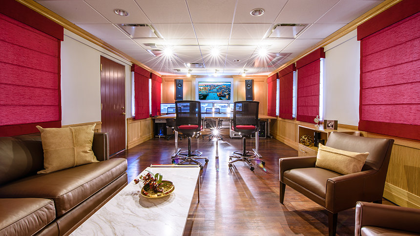 se construyó desde cero bajo la cuidadosa dirección de un experto en acústica de fama mundial. Es uno de las cinco salas de mezcla de sonido envolvente, cada una construida para empujar los límites de la excelencia del audio.