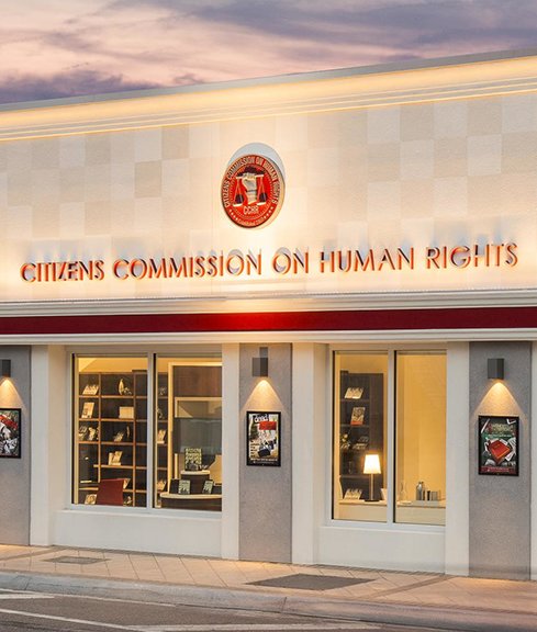 El nuevo centro de CCHR cerca del Edificio de Flag de Scientology en el centro de la ciudad de Clearwater es un elemento vital en un complejo de seis edificios dedicados a los programas patrocinados por la Iglesia sirviendo al área de Clearwater, un símbolo palpitante de la colaboración de la comunidad.