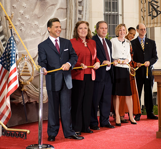 Con esas palabras, y uniéndose a los invitados de honor, el Sr. Miscavige corta la cinta, anunciando una nueva era de libertad para todos.