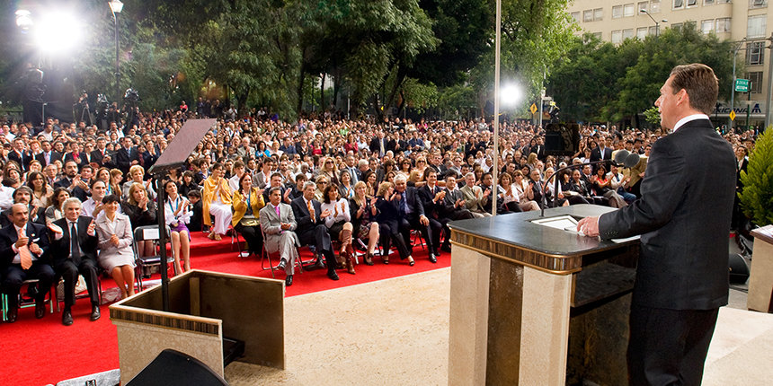 Al cierre de las ceremonias de inauguración, el Sr. Miscavige dijo a los miles de asistentes: “Os invito cordialmente a que crucéis las puertas de entrada y que consideréis lo que os espera en el interior. Porque aquí no sólo yace todo aquello a lo que me referí como un México sin drogas, sin crimen, alfabetizado y próspero, sino todo lo demás que enciende la chispa de esa revolución del espíritu por la cual México ha estado esperando durante mucho tiempo”.