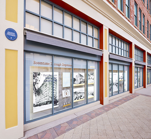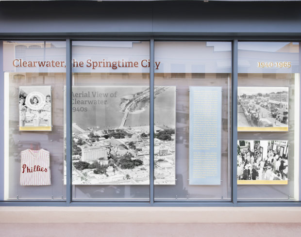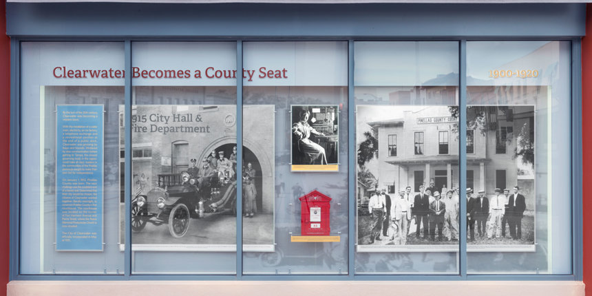 En homenaje a la historia de Clearwater, la Iglesia ha establecido una exhibición permanente extendiéndose a lo largo del exterior del Edificio Coachman en Cleveland Street y Fort Harrison Avenue. La exhibición presenta fotografías, puestos de información y artefactos que trazan la herencia de la ciudad desde sus primeros días hasta el presente. Entre los muchos momentos históricos de Clearwater que la exhibición muestra se encuentran: