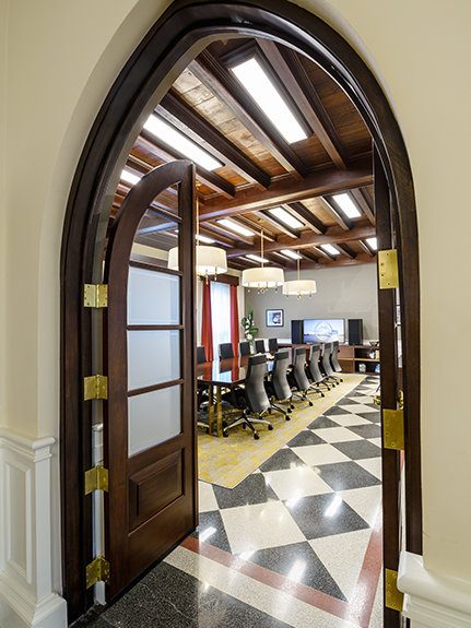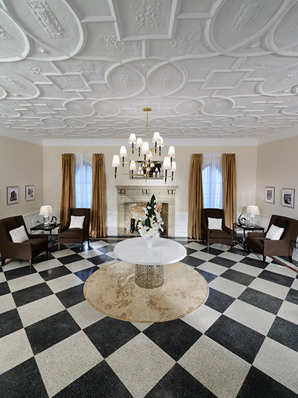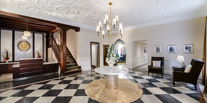 Los elementos históricos del Edificio Costa Oeste (West Coast) han sido meticulosamente restaurados, desde su distintiva fachada y las canastillas de las ventanas con su enrejado decorativo, a sus nuevas ventanas tradicionales de 12 paneles; y desde el original suelo de terrazo y techo con vigas de caoba en su elegante vestíbulo a su tejado de terracota verde y toldos exteriores.