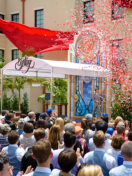 Un par de edificios clásicos en el centro de Clearwater fueron el punto de atención cuando 3 000 scientologists y sus invitados se reunieron en la ciudad el sábado 25 de junio de 2016, para presenciar el más reciente capítulo en la expansión de la Iglesia.