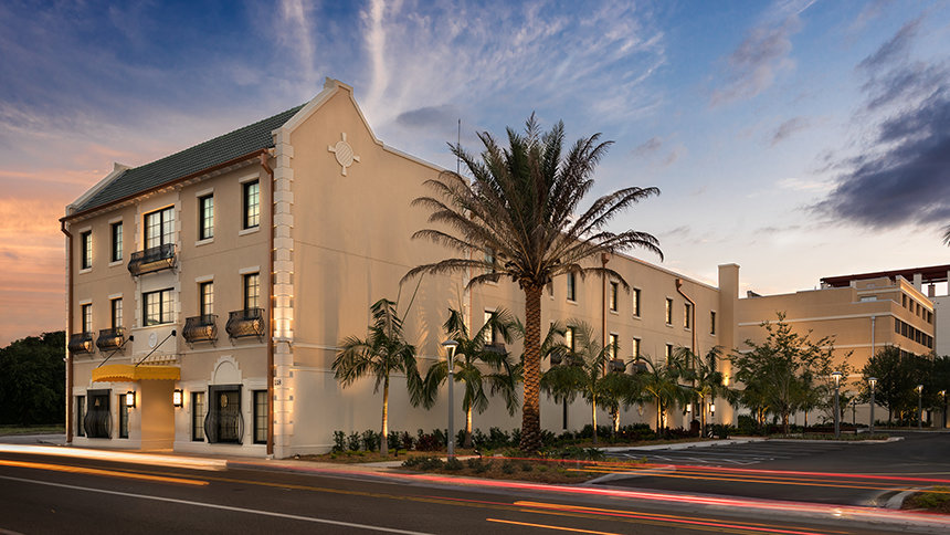 Construido en 1927, el WB de 1 633 metros cuadrados originalmente se llamó Hotel Costa Oeste, y fue considerado uno de los mejores hoteles boutique en Florida. El hotel ha servido de alojamiento para eventos tan variados como el Concurso de Belleza de Miss Florida y los Phillies de Filadelfia (equipo de béisbol)durante el entrenamiento de primavera. La Iglesia lo compró en 1981.