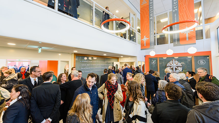 Apoyando el mensaje de colaboración del centro estuvieron dignatarios locales dándole la bienvenida a la Iglesia a su nuevo hogar, incluyendo al Sr. Maarten Lubbers, Presidente de Ámsterdam Unido; el Sr. Michael van Gils, Oficial Superior de la Policía Regional Holandesa; la Sra. Sheela Vyas, Presidenta del Consejo de Mujeres de Ámsterdam; y Ari van Buuren, Presidente de la Iniciativa por las Religiones Unidas en los Países Bajos.