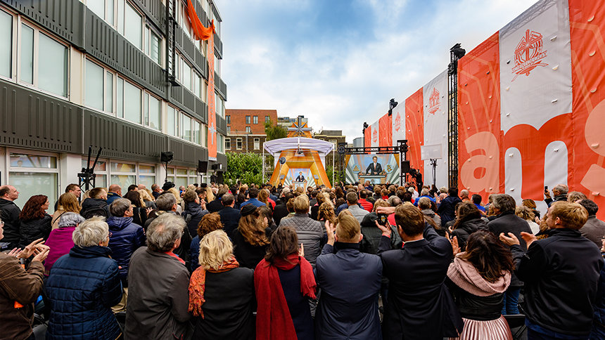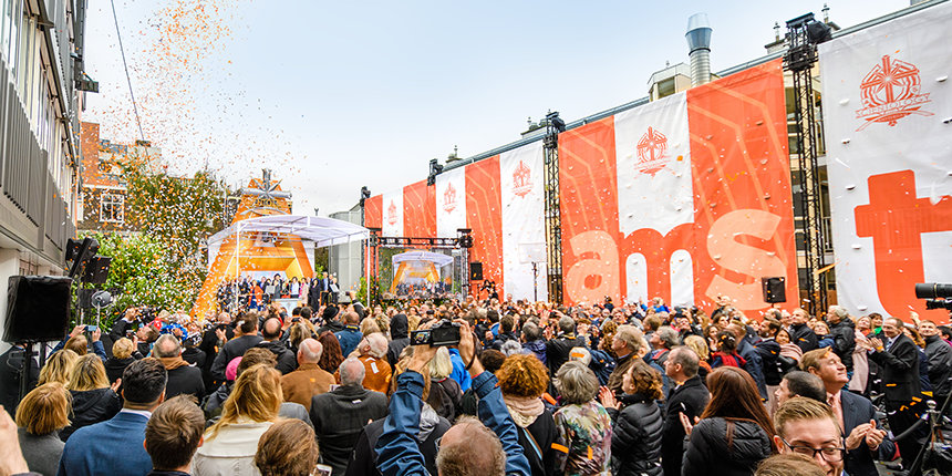 Las festividades de la gran inauguración abarcaron casi todas las notas del espectro cultural de la ciudad, desde el clásico ritmo de la “Oda a los canales de Ámsterdam” hasta los tambores surinameses y la interpretación electrónica que nos recuerda el papel de la ciudad en el nuevo folclore musical del milenio. También fue un día que anunció la diversidad y la asociación, liderado por dignatarios prominentes que representan la creencia colectiva de un Ámsterdam más fuerte así como un Ámsterdam más unido.