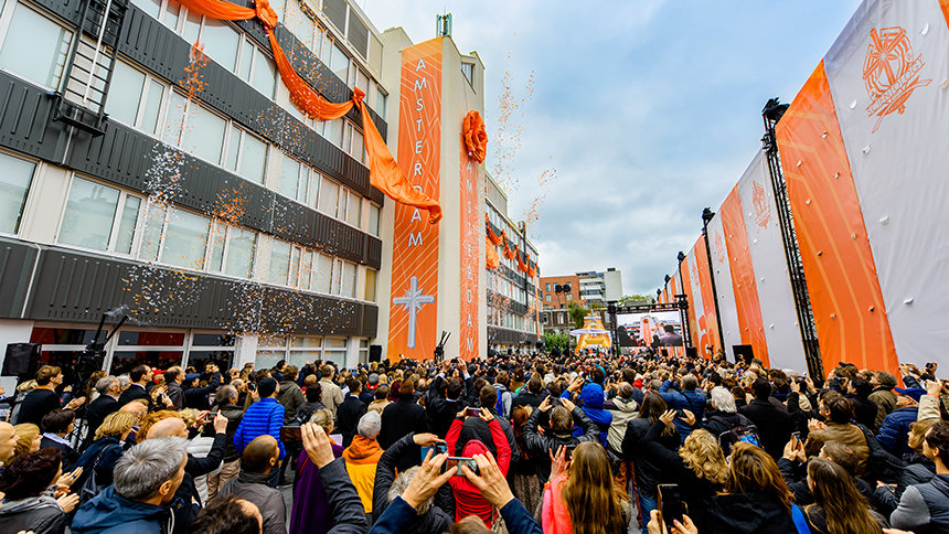 Maarten Lubbers, Presidente de Ámsterdam Unido habló de la Iglesia como un nuevo miembro para mejorar los institutos de aprendizaje, compañías y organizaciones de “la calle más inteligente” de los Países Bajos: “Todo el mundo necesita un santuario que ofrezca soledad y serenidad con uno mismo, y con su familia y sus amigos. En la vida, la gente experimenta pérdidas, tienen tragedias y desean y necesitan reflexionar. Y su nuevo hogar es una extensión de esta calle, las puertas están abiertas y la gente es bienvenida. Y creo que aquí todos serán recibidos con consideración y con los brazos abiertos, porque este es un centro que está realmente dedicado a inspirar y elevar espiritualmente a nuestra sociedad holandesa”.