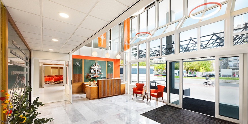 El nuevo y llamativo edificio de más de 7000 metros cuadrados presta servicios que expanden el impacto de la Iglesia en la ciudad y proporciona un punto de inicio para extender sus programas humanitarios desde su privilegiada ubicación, a pocos minutos del centro de la ciudad por metro, bicicleta o coche. Como tal, la instalación de 5 pisos es un deslumbrante monumento a la esperanza y la colaboración para más de 70 000 transeúntes que pasan diariamente por Wibautstraat.