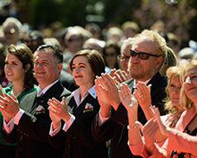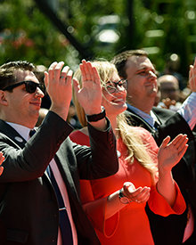 “A lo que nos estamos dedicando hoy es a un mayor propósito, una asignación para transformar el mañana para mejor”, dijo el Sr. Johnson. “Así que vamos a caminar juntos en el camino hacia la verdadera libertad. Y vamos a agradecer a L. Ronald Hubbard por su proyecto original para vivir”.