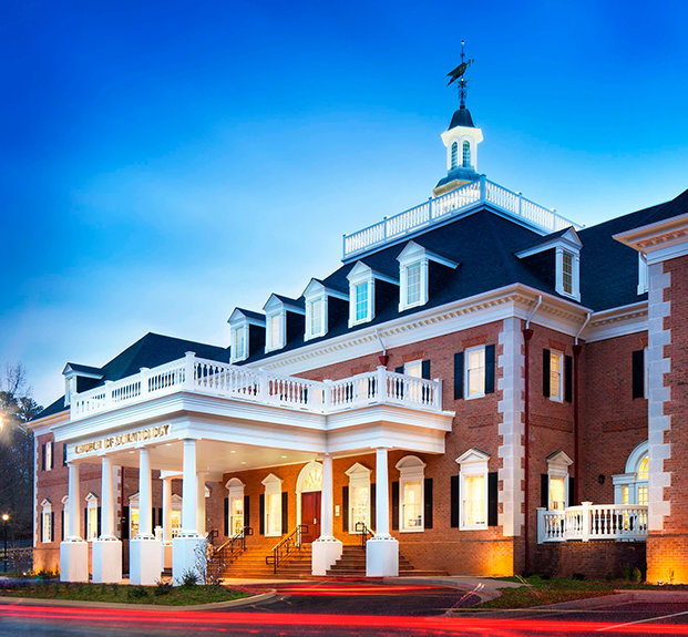 La nueva casa de la Iglesia está situada en el área metropolitana de Atlanta y en la ciudad de Sandy Springs, en la cima de una colina con vistas a la bulliciosa Roswell Road. Los 4000 metros cuadrados de mansión estilo Williamsburg habla con su “encanto sureño” y da la bienvenida a todos los de Atlanta y más allá.