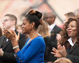 Una lluvia constante tuvo lugar..., justo a tiempo-momentos antes del comienzo de la ceremonia. “No hay lugar como Harlem,” dijo David Miscavige, Presidente de la Junta del Religious Technology Center y Líder Eclesiástico de la Religión de Scientology “Tus poetas del Renacimiento, tus dramaturgos, tus pintores, tus autores y músicos ,incluso un mero recital de los nombres es humillante: Duke Ellington, Cab Calloway, Billie Holiday, Claude McKay y Louis Armstrong. ¿Qué más necesita uno decir salvo: 'Elimina Harlem de la historia americana y todo se volverá agua tibia'”.