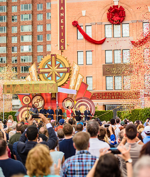 “Estamos aquí para celebrar el latido de Harlem, que también es el latido de la humanidad”, dijo el Sr. Miscavige en su discurso de inauguración. “y todo lo que tienes que hacer es presionar tu oreja derecha contra el suelo, y escucharlo reververando, una y otra vez: Harlem. Harlem Harlem Tras esto, alguien se preguntaría '¿Qué ha pasado?'. Puedes decir verazmente: Harlem ha vuelto a nacer”.