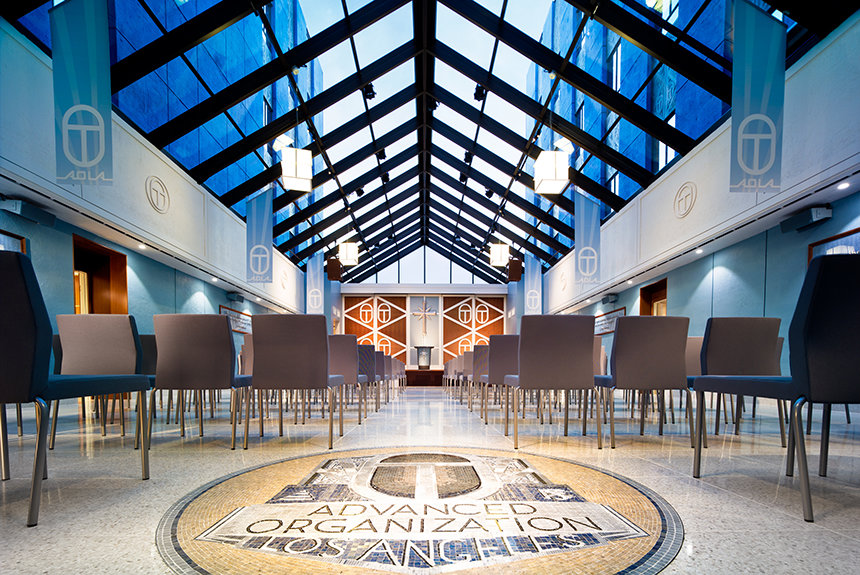 A lo largo de la L. Ronald Hubbard Way, en la parte superior del simbólico Puente del Pacífico Ideal, se encuentra la Nueva Organización Avanzada Ideal Modelo de Los Ángeles (AOLA). Es aquí donde los scientologists se embarcan en su travesía a OT y a los estados superiores de consciencia espiritual. Con ese fin, AOLA cuenta con amplias salas de cursos para cientos de Auditores de Solo en entrenamiento; una División Técnica de Solo dedicada exclusivamente a los Auditores de Solo en los Cursos Avanzados, y tres Centros de Guía Hubbard completos, para los que atraviesan los reinos superiores con Dianética de la Nueva Era para OTs Auditada.