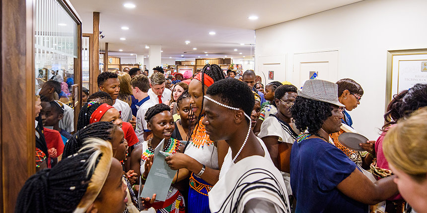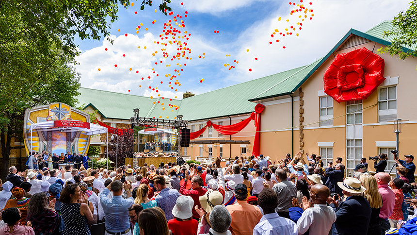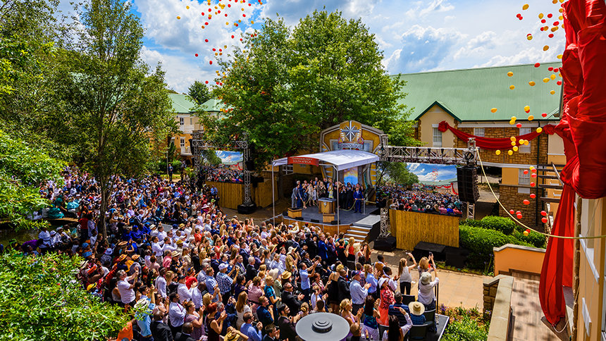 Para conmemorar la ocasión, el Sr. David Miscavige, líder eclesiástico de la religión de Scientology, dio la bienvenida a los asistentes de acuerdo a los deseos de hace más de 50 años del Fundador de Scientology, L. Ronald Hubbard (LRH), de infundir cordura y orientación a una Sudáfrica segregada: “Si alguien preguntara qué significa seguir un sueño de LRH de ‘Un hombre, un voto’ para una nación, un propósito y desde el poder africano hasta el orgullo africano y desde África para siempre a África viva, bueno, todo lo que tenéis que hacer es considerar esas palabras, ‘eternamente África’ e ‘infinitamente África’, porque aquí yace nuestra puerta del león a la puerta del infinito”.