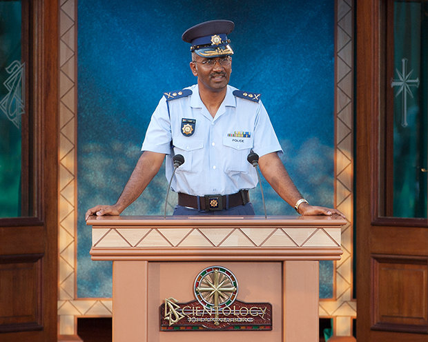El Sr. Miscavige indicó los muchos logros que los scientologists de Sudáfrica habían llevado a cabo en los 45 años de historia de la congregación, incluyendo la exposición de los campos de trabajo psiquiátricos alojando a ciudadanos negros y el incansable esfuerzo por restaurar sus Derechos Humanos durante la época del apartheid; capacitando a las siguientes generaciones con programas de alfabetización y calmando revueltas a escala completa con la amplia distribución del código moral, El Camino a la Felicidad, un código que podría adoptar toda Sudáfrica.