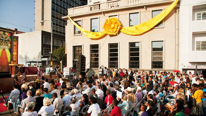 El Centro se encuentra cerca de la Universidad Witswatersrand (WITS) en el distrito de Braamfontein, contiene una comunidad muy variada, cuyo objetivo común está expresado en el lema del distrito: “El lugar donde la gente se eleva hacia la grandeza”. Como maestro de ceremonias, el director del Centro, Edmund Dladlu, se comprometió a trabajar con la comunidad para hacer de ese lema una realidad.