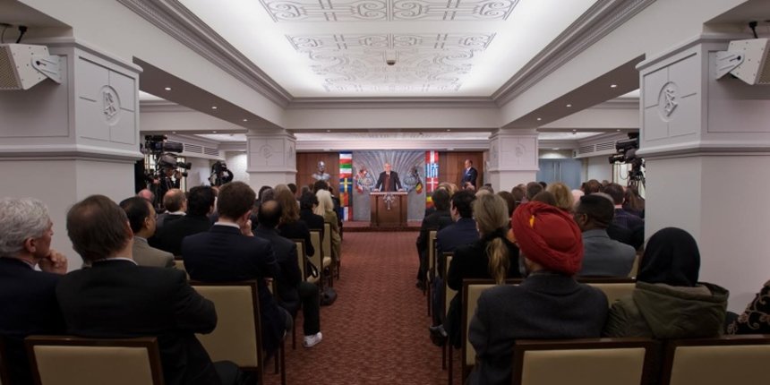 Entre los distinguidos oradores invitados que participaron en la inauguración se encontraban el Honorable Hugo Coveliers, Senador del parlamento belga; el profesor Abolfazl Beheshti, profesor de Relaciones Internacionales y Economía de la Energía en la Universidad de Lille, Francia; el Honorable Juan Ferreiro, Delegado del Director General para Asuntos Religiosos en el Ministerio de Justicia Español; la Sra. Katalin Szomor, miembro experto de la Comisión de Drogas del Parlamento Húngaro y antigua Coordinadora Nacional sobre Drogas; y el endo Christopher Vonck, Rector de la Facultad para el estudio Comparativo de las Religiones en la Universidad de Antwerp.