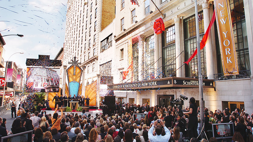 La Iglesia de Scientology de la ciudad de Nueva York, localizada al lado del Times Square, fue un regalo de la Asociación Internacional de Scientologists a la gente de Nueva York en reconocimiento por su valor y espíritu a la hora de encarar el desastre de las Torres Gemelas en el 2001.