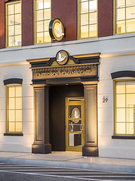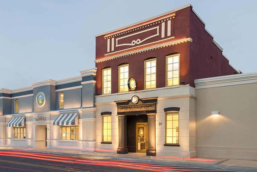 El nuevo centro de Unidos por los Derechos Humanos en Clearwater, ubicado en la calle principal de la ciudad, el Fort Harrison Avenue, se erige como un cuartel general honrando el concepto de los derechos humanos y como compromiso inquebrantable con la educación sobre los derechos humanos a través de la área metropolitana de la Bahía de Tampa.