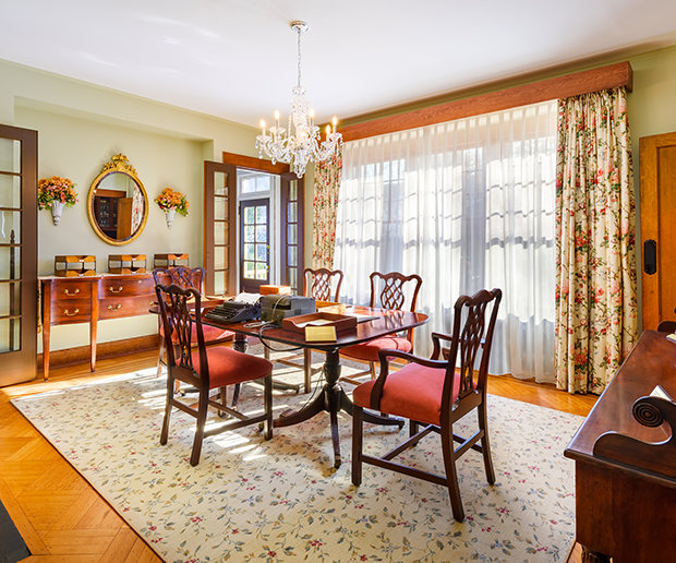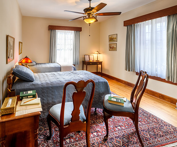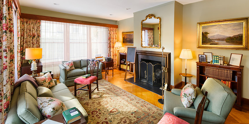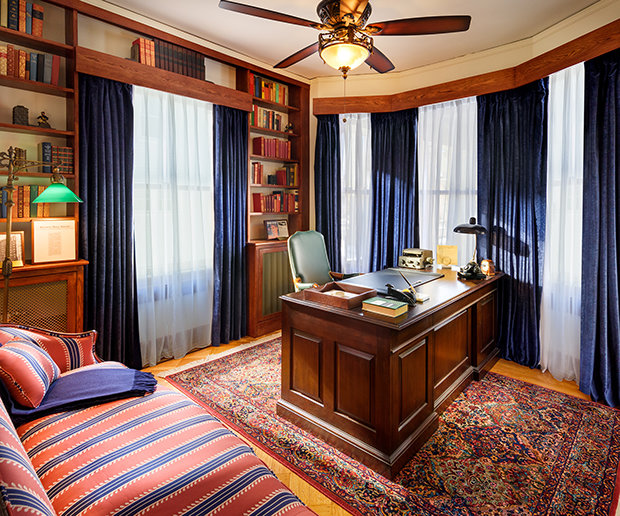 Este sitio de influencia universal ahora se encuentra como estaba antes, completo con muebles originales, pomos de cristal antiguos de puertas y suelos de madera con incrustaciones de patrones celtas de caoba restaurados. Todos han sido restaurados a su glorioso pasado, incluyendo el escritorio donde el Sr. Hubbard escribió una vez y la chimenea ante la cual se reunían los estudiantes.