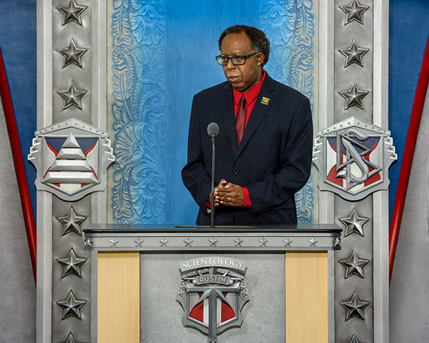 Liderando la celebración de la Inauguración ha estado el Sr. David Miscavige, líder eclesiástico de la religión de Scientology, que ha dado la bienvenida a los Scientologists del Estado de la Estrella Solitaria con un reconocimiento a su propósito y orgullo.