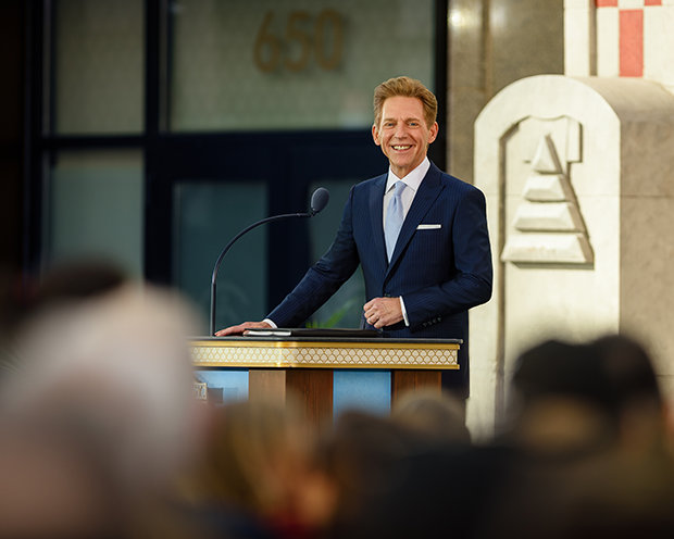 El Presidente de la Junta del Religious Technology Center, el Sr. Miscavige, ha dado la bienvenida a la encantada audiencia antes de que se cortara la cinta. “Hoy esta Segunda Ciudad es realmente insuperable”, dijo el Sr. Miscavige. “Y antes de que la cinta de la Ciudad del Viento caiga, este es también el momento para reconocer lo que ya sabéis: en el pasado Chicago renació y hoy, de la misma manera, hay espacio para un nuevo comienzo. Y así, hay espacio para restaurar en las personas la capacidad para vivir una vida mejor, bajo su propio juicio, con sus semejantes y jugar un juego mejor”.
