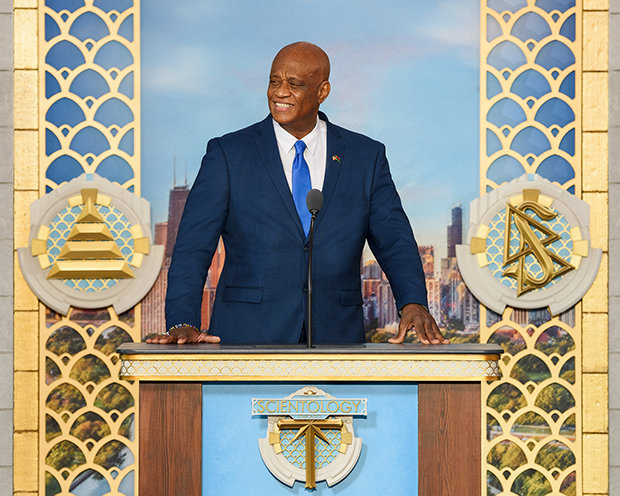 “Con esta nueva Iglesia y los programas transformadores que vais a infundir en nuestra comunidad, tenemos un plan para construir, manzana a manzana, una ciudad de la que estemos orgullosos. Y ahora se erigirá sobre los cimientos irrompibles de nuestra gente, nuestras organizaciones, y sobre centros de cambio como esta nueva Iglesia de Scientology”.