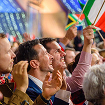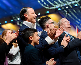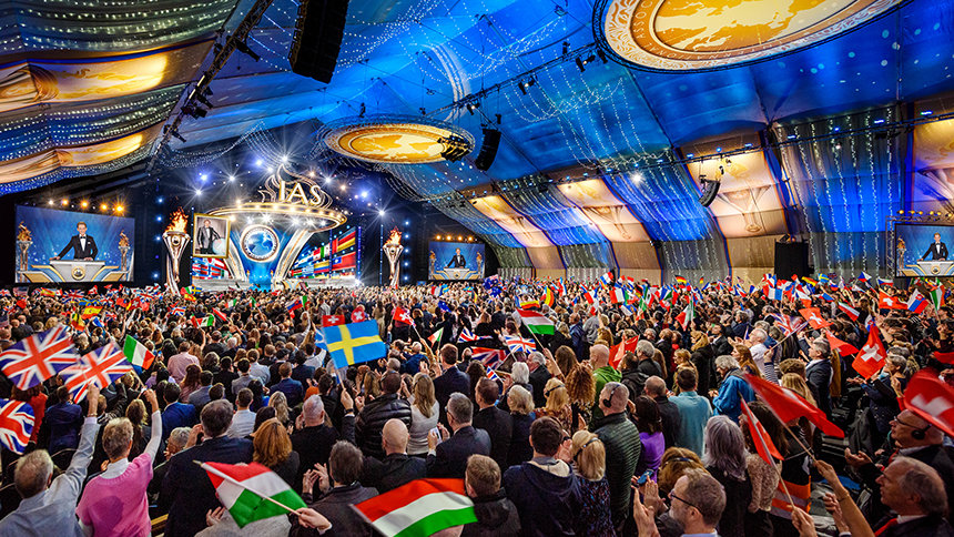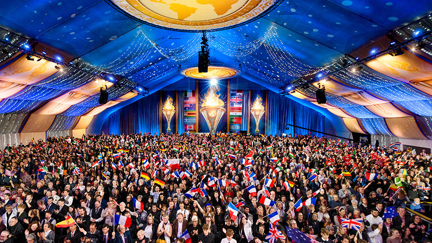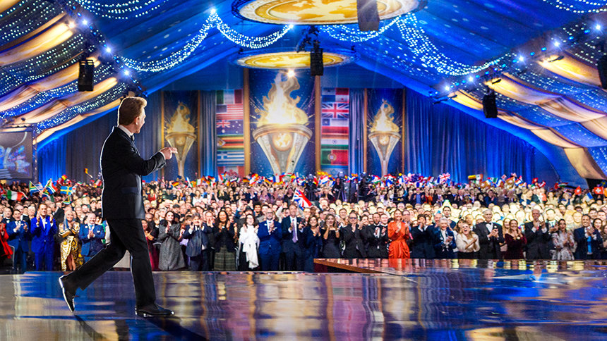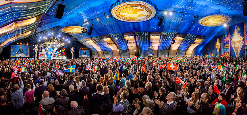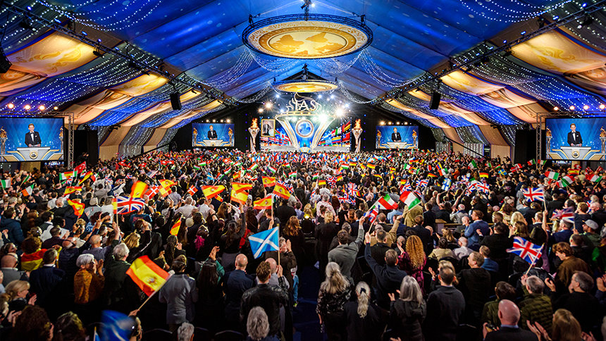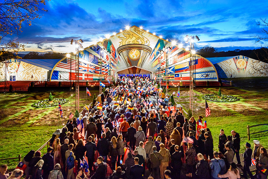 Reunidos de todo el Reino Unido, Europa, EE. UU., África y Asia, la expectante audiencia entró por la alfombra roja a la exquisita gran carpa. A medida que el escenario estallaba en luz, que indicaba el comienzo del evento de apertura, el Sr. David Miscavige, Presidente de la Junta del Religious Technology Center, hacía su entrada con una estruendosa ovación de la audiencia, con una duración histórica.
