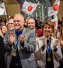El Sr. Miscavige acentuó la velada al otorgar la distinguida Medalla de la Libertad de la IAS, dando reconocimiento a Scientologists por su extraordinario compromiso humanitario. Por primera vez en la historia, cada uno de los ganadores de la medalla es Nuevo OT VIII.