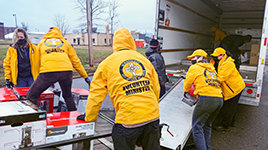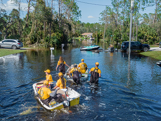 El Sr. Miscavige puso después el foco de atención en la fuerza internacional de voluntarios de la Iglesia, los Ministros Voluntarios de Scientology. El grupo respondió a la llamada en todos los desastres naturales devastadores de los últimos cuatro años: después de un terremoto devastador en Cachemira, tifones en Japón, incendios cataclísmicos en Australia, inundaciones repentinas en Indonesia, una erupción volcánica en San Vicente, monzones en Pakistán y huracanes en la costa sudoeste de Florida. En total, los Ministros Voluntarios proporcionaron ayuda de primera línea en el lugar de 45 desastres en 20 naciones.
