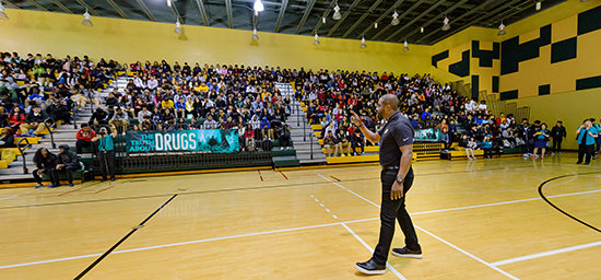 Impulsando aún más a la audiencia en la revisión mundial de la misión humanitaria de la Iglesia, el Sr. Miscavige centra la atención en las iniciativas de educación patrocinadas por la IAS en uso en todas partes: Unidos por los Derechos Humanos para hacer de la Declaración Universal de los Derechos Humanos una realidad en todos los países; El Camino a la Felicidad para restaurar la dignidad y el honor a la humanidad a través de los principios morales de sentido común; y Un Mundo sin Drogas para cambiar la corriente del consumo de drogas para una generación con La Verdad sobre las Drogas. Como muestra de los logros alcanzados de 2020 a 2023: