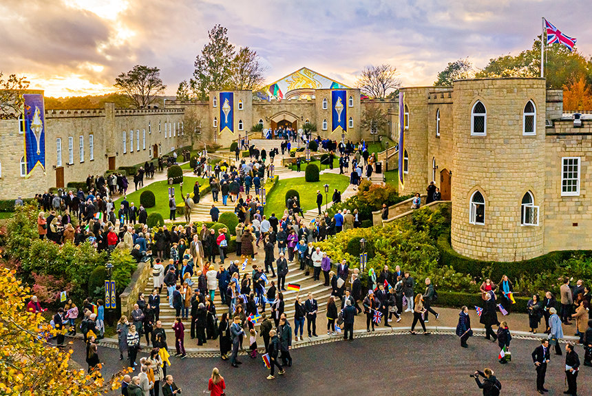 Hora tras hora, los reflectores bailaron a lo largo de las carreteras bordeadas de setos por la campiña de West Sussex, mientras miles de Scientologists de todas partes del mundo se abrían camino hasta el legendario hogar de L. Ronald Hubbard en el Reino Unido: Saint Hill. Los atemporales acordes de las gaitas escocesas y un grupo de tambores subieron pasando delante de las torres del castillo y de las colinas ondulantes, dando la bienvenida a los invitados elegantemente vestidos. Esto marcó el comienzo del muy esperado fin de semana de Celebración del Aniversario de la IAS.