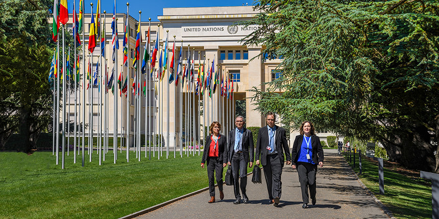 La gira del logro de la IAS continuó con la Comisión de Ciudadanos por los Derechos Humanos (CCHR), culminando en una historia de perseverancia implacable. El sitio fue la Sede Europea de las Naciones Unidas en Ginebra, Suiza. La victoria histórica fue el resultado de décadas de trabajo de CCHR. Después de años de informar sobre el maltrato psiquiátrico en un total de 18 naciones, CCHR recibió una invitación formal a una primera consulta de las Naciones Unidas sobre Derechos Humanos en la Salud Mental. CCHR presentó testimonio experto pidiendo vehementemente la prohibición de la “coerción y privaciones de libertad en la salud mental”. Cuando la Oficina del Alto Comisionado para los Derechos Humanos puso el mandato de la salud mental ante el Consejo de Derechos Humanos de la ONU, el resultado anunció un cambio radical en el campo de la salud mental. El informe final del consejo y las directrices conjuntas de implementación de la OMS citan la contribución de CCHR, oficialmente dice por decreto de la ONU: