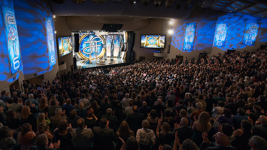 «Esta noche honramos a LRH»– dijo el Sr. David Miscavige, Presidente de la Junta Religious Technology Center. "Su vida, su legado, su historia y su herencia. Y sobre todo, al propio hombre. Así que mientras él está con nosotros día a día, en cada página de cada libro, en cada conferencia, o en cada paso de su Puente a la Libertad Total, bueno, esta noche nos acercamos cada vez más mientras celebramos un legado de LRH y un plan de juego donde toda la Humanidad se hace libre".