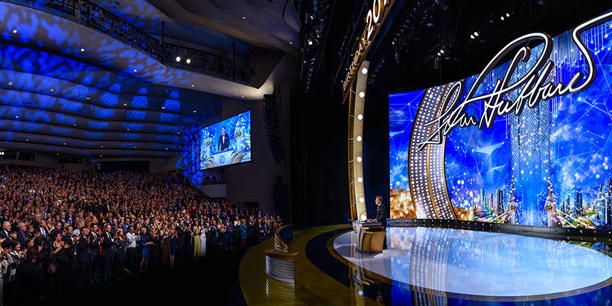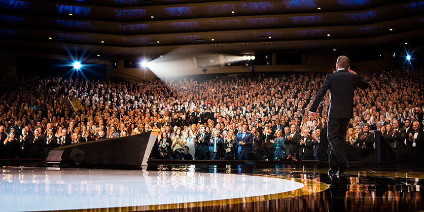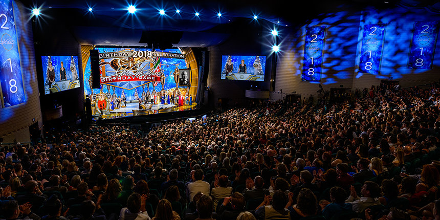Y así comenzó la noche, con una electrizante anticipación y el clamoroso saludo para el líder eclesiástico de Scientology, el Sr. David Miscavige: “Sí, de hecho, esta Celebración del Cumpleaños es algo nunca antes visto… Este magnífico momento de nuestra historia, esta noche, esta hora, este instante cuando digo: esto es Scientology hoy en día. Y suponiendo que captas lo que ahora tenemos en términos de excelencia técnica y sus recursos, bueno, no puedes negar que estos son tiempos legendarios. En consecuencia, es lógico que ahora regresemos a donde comenzó esa leyenda”.