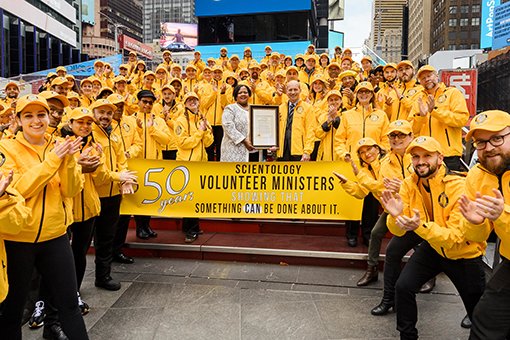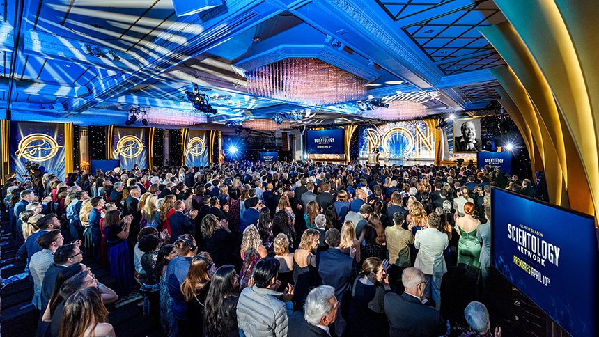 El ambiente estaba lleno de expectativa y cuando el Sr. David Miscavige, líder eclesiástico de la religión de Scientology, entró, la multitud se puso de pie, dándole la bienvenida con una ensordecedora ovación que siguió… y siguió… y siguió.