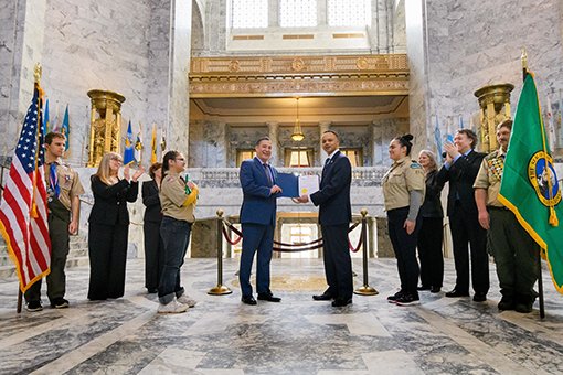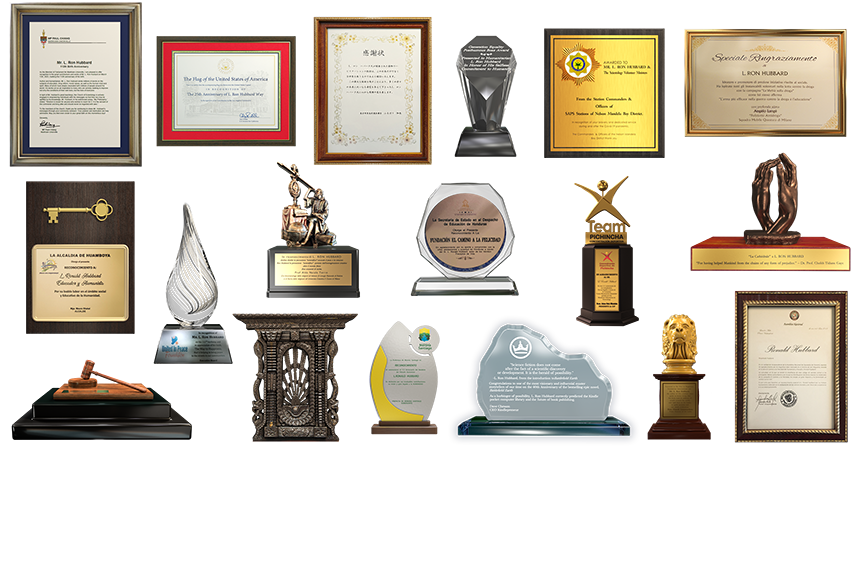 El Sr. Miscavige presentó entonces una gran cantidad de honores otorgados a L. Ronald Hubbard en reconocimiento por su cumpleaños: