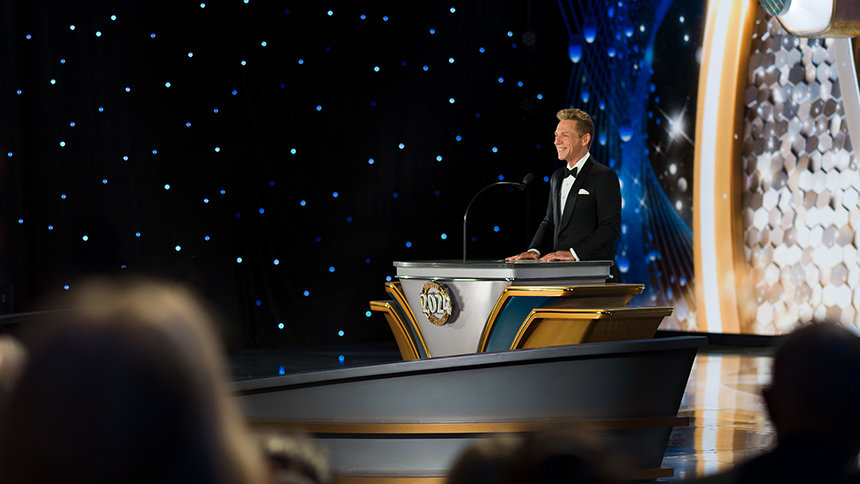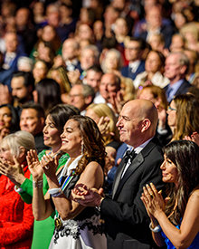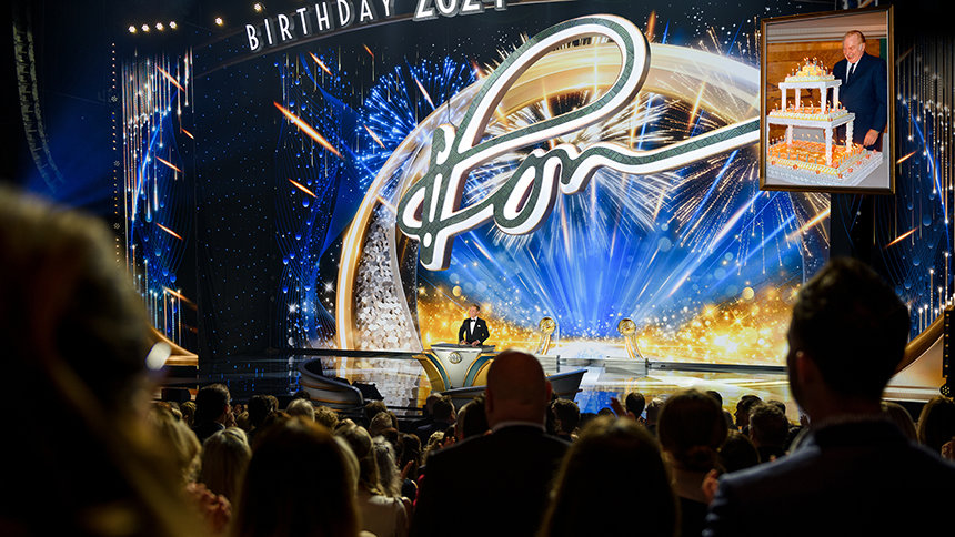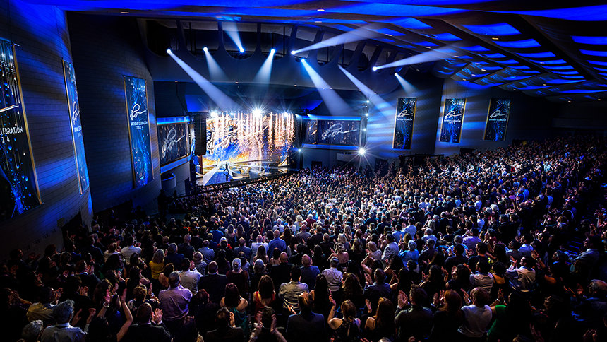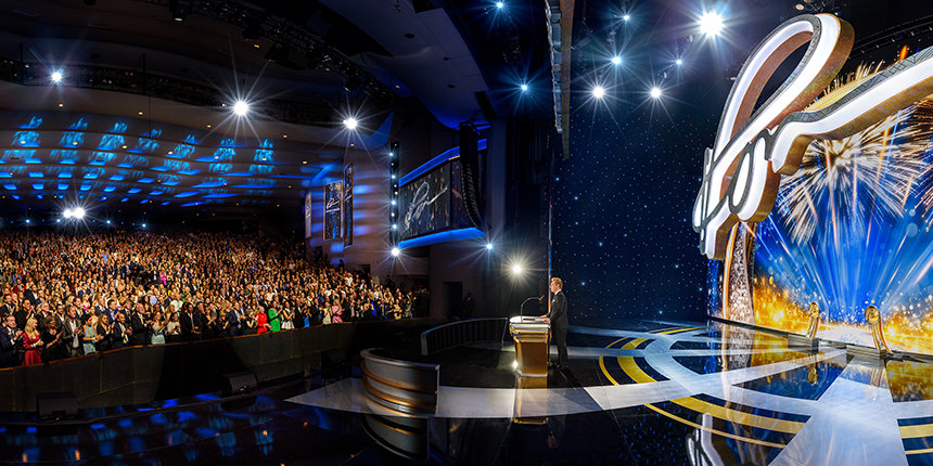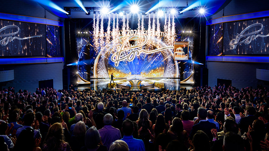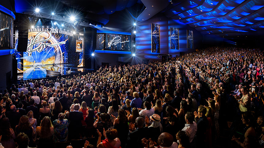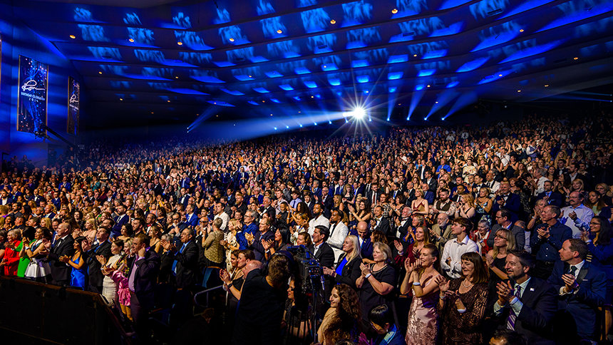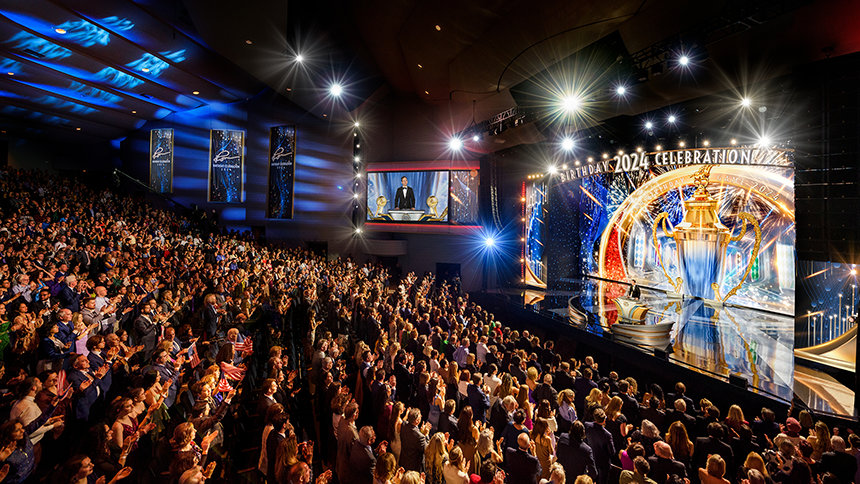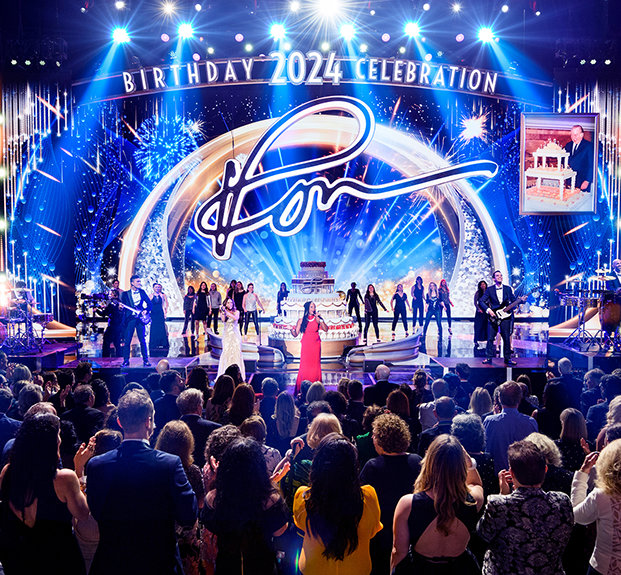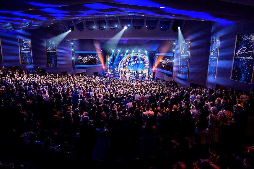 Después de 30 minutos llenos de energía generada por la actuación de una banda superlativa —a la que se han unido solistas, bailarines e incluso el bajista Stanley Clarke, ganador del Premio Grammy—, fuegos artificiales y la primera de numerosas ovaciones le dieron la bienvenida a David Miscavige, Presidente de la Junta del Religious Technology Center, mientras salía al escenario para celebrar el cumpleaños de L. Ronald Hubbard (LRH).