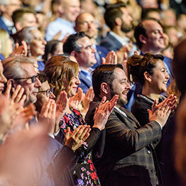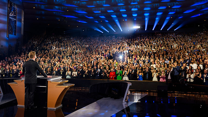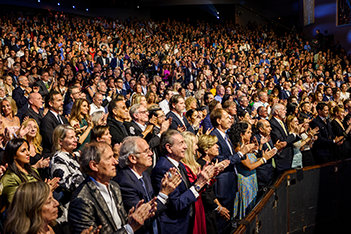 Uno de los temas inspiradores de la noche: “Pensar en Grande”, se ha mostrado durante la intensa y exultante celebración que estaba a rebosar de público, esta incluía una revisión de los logros del año pasado, así como la presentación de ejecutivos recién entrenados que van a Orgs Ideales de todo el mundo después de haber terminado el programa de entrenamiento más importante en la historia de Scientology.