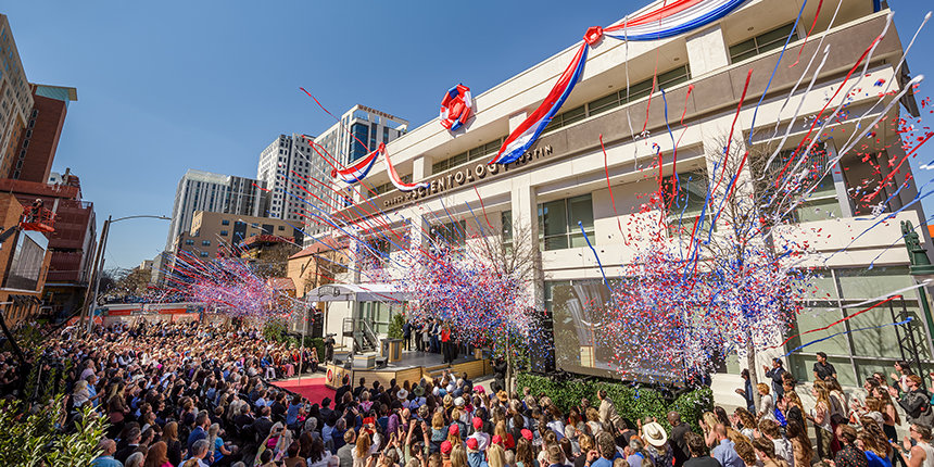 Solo dos días después y a unos 3200 kilómetros, en un día de invierno en Chicago inusualmente cálido, 21 grados, en lo que a menudo se llama “La Mejor Gran Ciudad de Estados Unidos”, el Sr. Miscavige se unió a miles de Scientologists para celebrar la Inauguración de la tercera Org Ideal en nueve días. El monumento del centro de la ciudad bellamente restaurado tiene más de un siglo y se encuentra en el Printer’s Row, el centro histórico de la industria de impresión del Medio Oeste.
