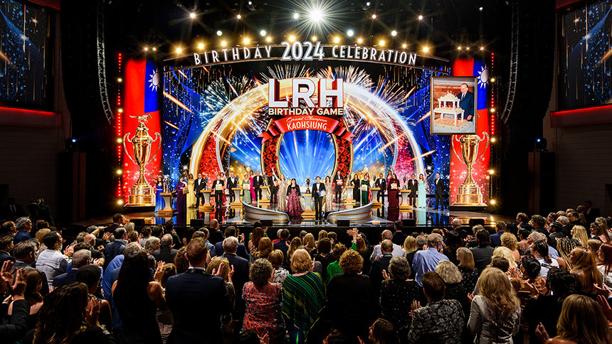 “Como es apropiado en esta noche de noches, presentaremos lo que LRH más deseaba en su cumpleaños: no solo un Juego de Cumpleaños que es EXPANSIÓN”, ha dicho el Sr. Miscavige al público al inicio de las festividades del sábado por la noche, “sino también el destino expansionista impulsado por su Tecnología y todo como se manifiesta en las Orgs Ideales”.