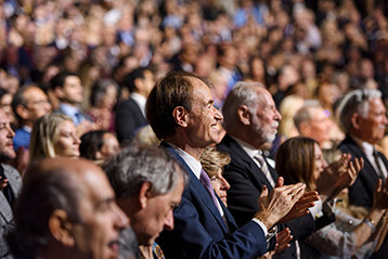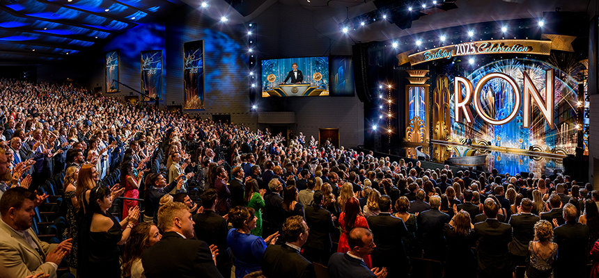 Poniendo esta noche de celebración sin límites en perspectiva, el Sr. David Miscavige, líder eclesiástico de la religión de Scientology, llegó a la primera de innumerables ovaciones de pie que sacudió el auditorio. Con ello, guio a la audiencia de miles de personas hacia una odisea de dos horas y media que describió el camino de investigación y descubrimiento de LRH y su marca perdurable.