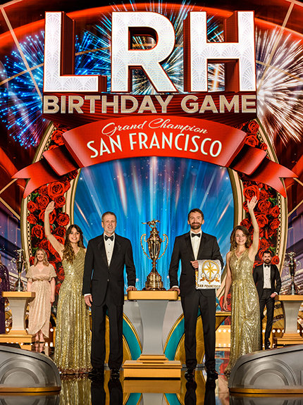 La noche giró en torno a tres magníficos momentos destacados: la presentación de un trío de nuevos Sitios Históricos, lugares donde LRH hizo logros monumentales, ahora inmortalizados; después las noticias de la inminente Inauguración de la Iglesia Ideal de Scientology más nueva; y el tradicional Juego de Cumpleaños anunciando a los ganadores de la carrera internacional, impulsados por la meta de la expansión.