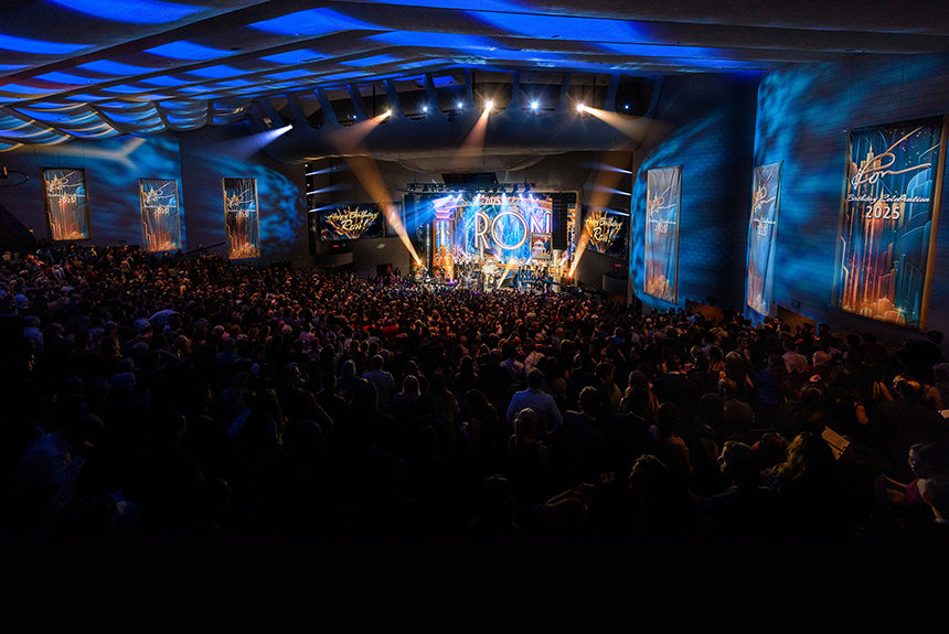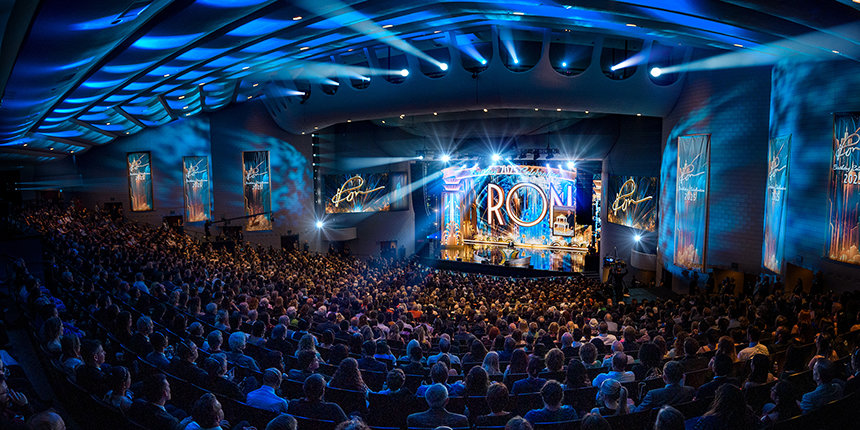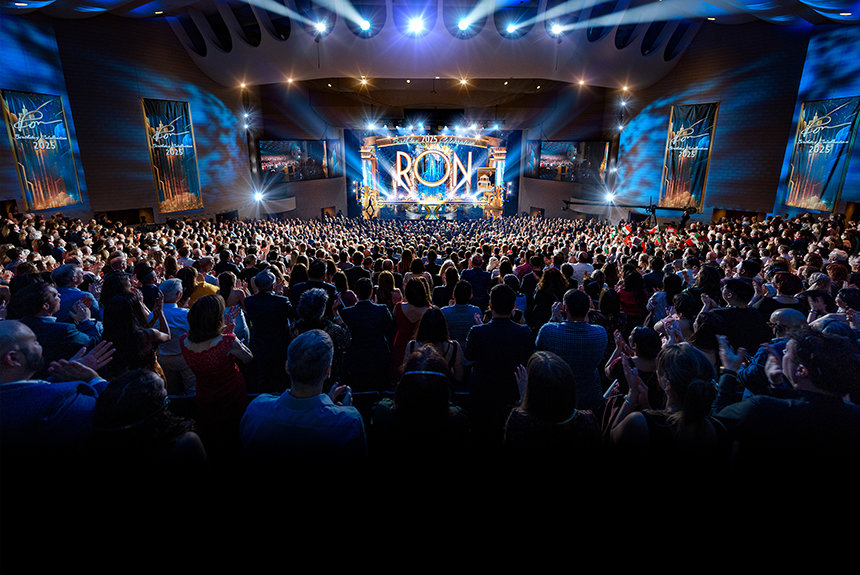 “Todavía queda un elemento más en la agenda de esta noche. Es decir, ahora es el momento de atravesar el espejo y considerar lo que nos espera mañana”, dijo. Y para los miles de asistentes, lo que seguía fue una revelación inesperada, inolvidable e innegable: un avance impresionante del futuro Auditorio de L. Ronald Hubbard: una obra maestra destinada a coronar el campus de Flag.