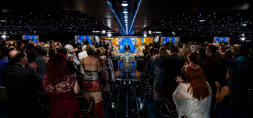 El primer puerto de escala en las noches de celebración fue el Freewinds en sí. El legendario barco combina la competencia, la destreza náutica y una misión humanitaria, y la noche lo mostró con un detalle apasionado.