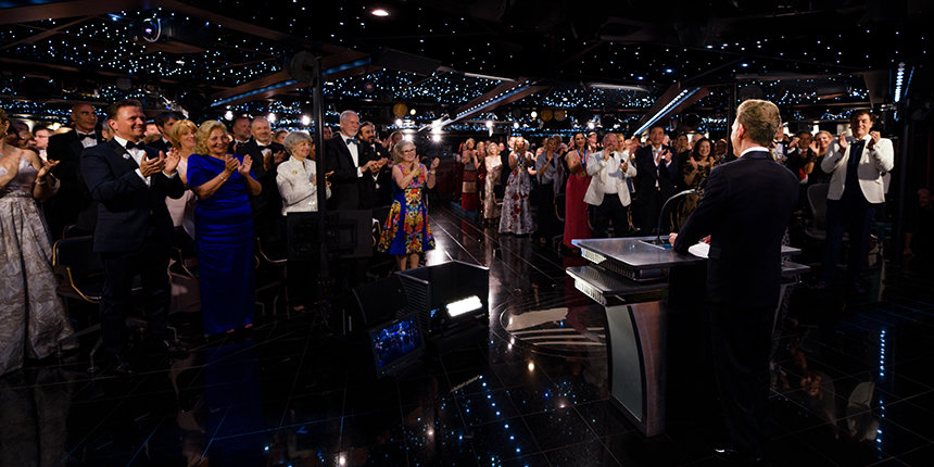 Los pasajeros a bordo para el Viaje Inaugural también asistieron a un evento de gala honrando a la Asociación Internacional de Scientologists (IAS) y su dedicación infalible no solo de apoyar y proteger la religión, sino también de impulsar una serie de campañas humanitarias diseñadas para un único propósito: el acelerar el mejoramiento de la Humanidad. Estas incluyen: