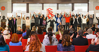El público permanece de pie y los vítores resuenan por todo el auditorio logro tras logro.